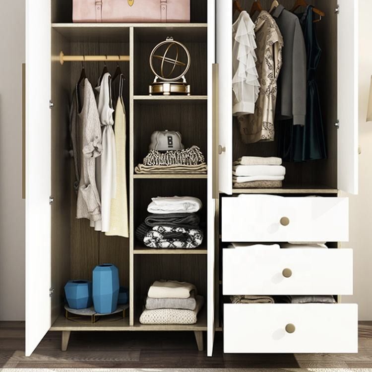 Multifunctionele opslag: De moderne paneelgarderobes hebben goed ontworpen bergruimte binnen, met inbegrip van kleding het hangen gebieden, de gebieden van de ladeopslag, schoenrekken, kan enz. niet alleen u kleren organiseren, maar u kunt kleine punten zoals schoenen, hoeden, zakken ook opslaan, enz., die uw kleren, schoenen, en toebehoren toestaan om de juiste opslagplaats te hebben.