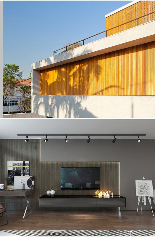 Commerciële plaatsen: WPC-traliewerk milieubescherming type houten plastic binnenlandse kan wallboard voor decoratie van commerciële plaatsen, zoals hotelhallen, winkelcomplexxen, bureaus, enz. worden gebruikt. Zijn milieuvriendelijke kenmerken en esthetisch effect voegen elegantie en luxe aan de bedrijfsplaats toe en trekken de aandacht van klanten aan.