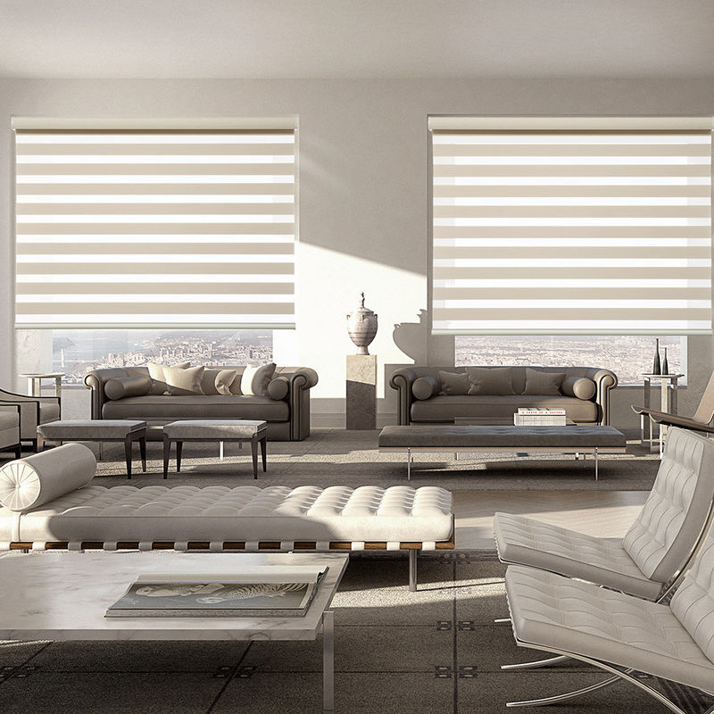 Dubbele zonneblinden: De controle Dubbele zonneblinden van de kind gebruiken de veilige draadloze lente de bouw van twee die zonneblinden, gewoonlijk van aluminiumlegering of plastiek wordt gemaakt. Dit ontwerp staat de gordijnen toe zowel licht regelen als privacy verstrekken.