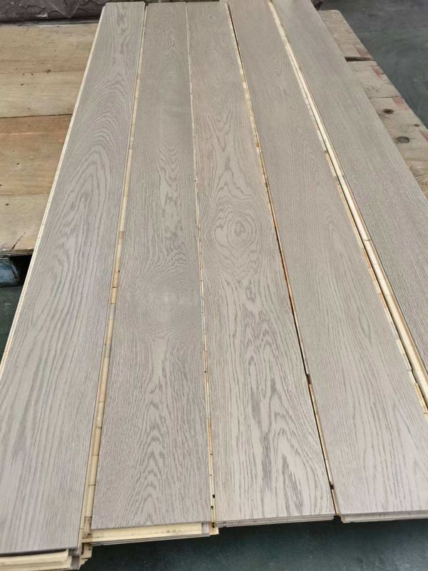 De gebouwde eiken bevloering is een bevloeringsmateriaal van uitstekende kwaliteit dat voor zijn elegante verschijning en duurzaamheid populair is. De vloer wordt gemaakt van veelvoudige lagen van gelamineerde eik, is de hoogste laag een stevige houten eiken oppervlakte, en de bodemlaag wordt gemaakt van dwars-gelijmd hout voor betere stabiliteit en slijtageweerstand. De eik is een hard en duurzaam hout met natuurlijke texturen en mooie kleuren die een natuurlijke en het welkom heten atmosfeer aan uw ruimte toevoegen.